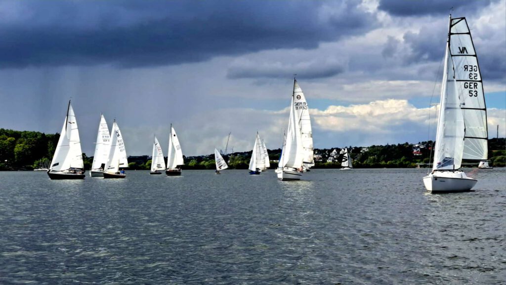 Am vergangenen Samstag stand das Wameler Becken des Möhnesees ganz im Zeichen des Segelsports und der Geselligkeit. Die traditionsreiche Regatta „Blaues Band“ lockte insgesamt 22 Boote der drei benachbarten Segelvereine – Yachtclub Sauerland Möhnesee (YSM), Segelclub 77 Möhnesee (S77M) und Yachtclub Wamel-Möhne (YCWM) – auf das Wasser. Für den gastgebenden YSM war es ein besonderer Tag, denn neben dem sportlichen Wettstreit wurde zugleich das 55-jährige Bestehen des Clubs gefeiert.